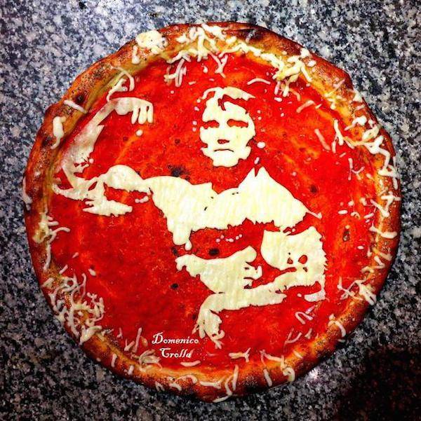 Skotlannin Glasgowssa ravintoloitsija Domenico Crolla on muotoillut pizzoihinsa erilaisten julkkisten kuvia. Bella Napoli nimisessä ravintolassa muotoiluun käytetään pizzakastiketta ja mozzarella-juustoa. Tarkan kädentyön jäljen huomaa varsinkin läheltä katsottuna kuinka mozzarellaa on huolellisesti leikattu kastikkeen päälle muotoonsa. Tästä voisivat ottaa mallia myös Suomen ravintoloitsijat!