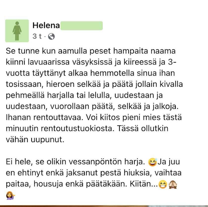 Helena kertoo tilanteesta, joka tuntui ensin hänestä hyvältä.