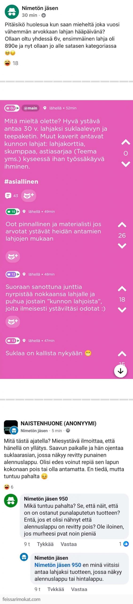 - Feissarimokat: Lahjan arvo kertoo suhteen tilan tai ystävyyden laadun?