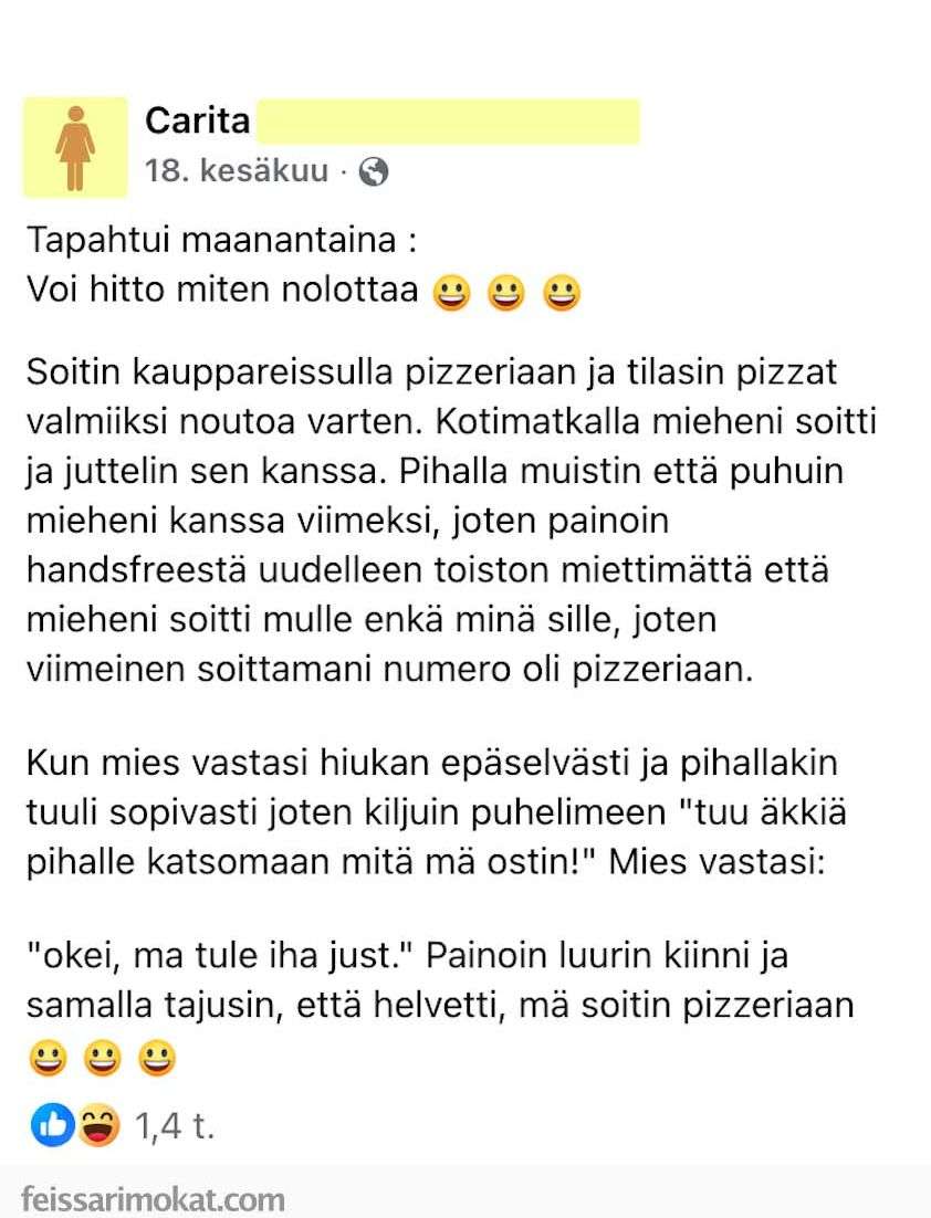 Feissarimokat: Carita osasi mokata pizzan kanssa – taitava