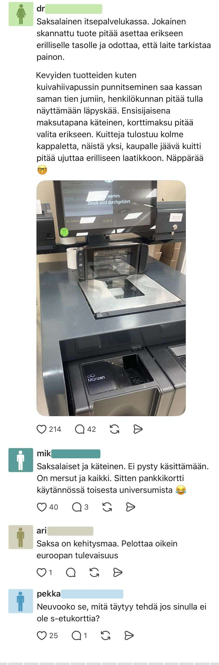 - Feissarimokat: Saksalainen itsepalvelukassa hämmentää – ”Kuitteja tulostuu kolme”