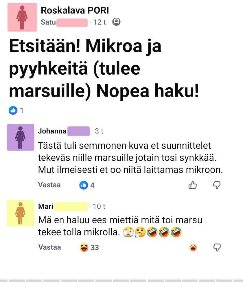 – Ja tietääkö joku, mihin marsu tarvitsee mikroa? Mä luulen, että omat veikkaukseni marsun ruuan lämmittämisestä tai marsun pesästä ovat varmaan vääriä, mietiskelee eräs.
