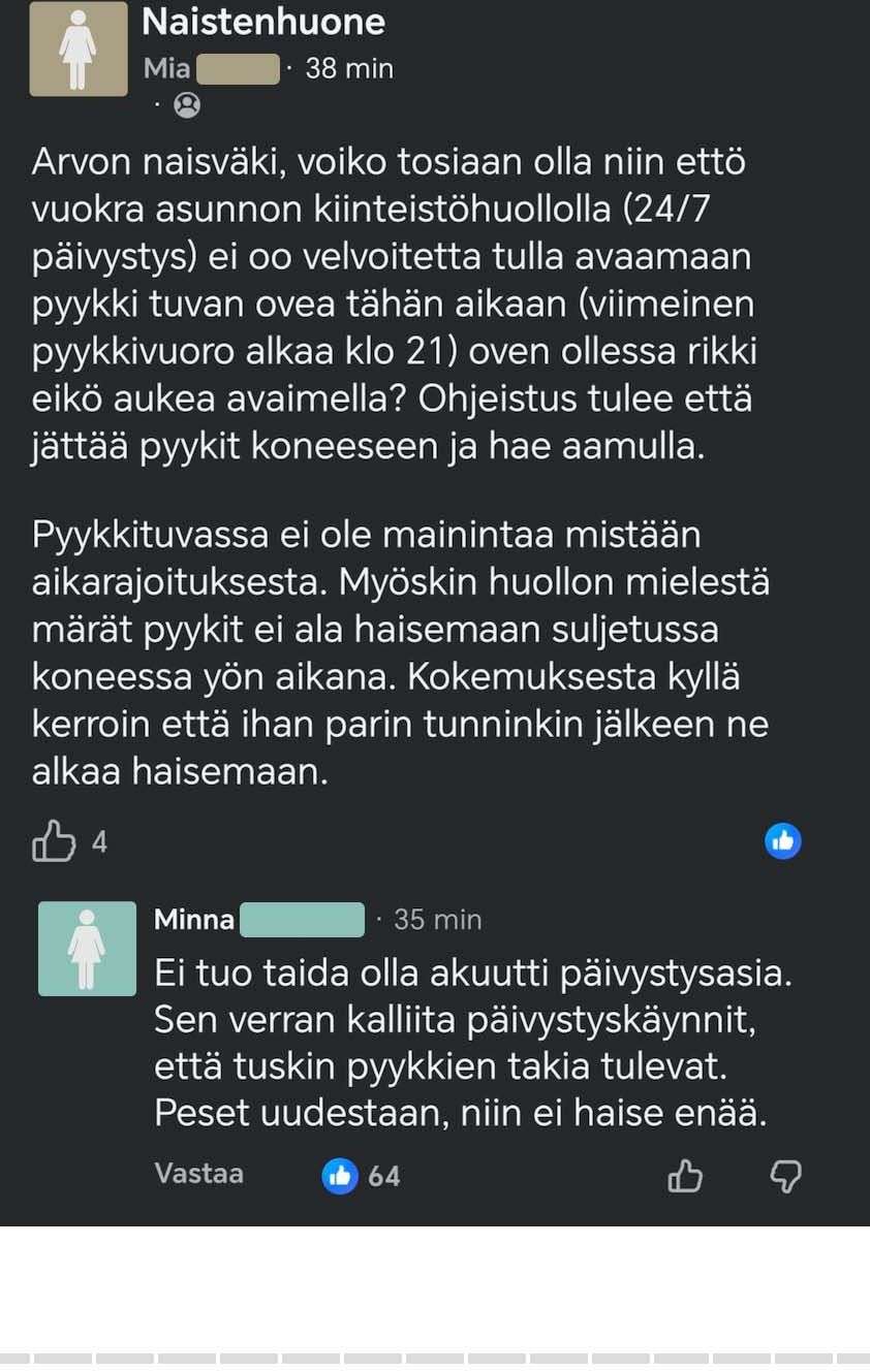 - Feissarimokat: Pyykit jumissa eikä kiinteistöhuolto auta – mitä tehdä?