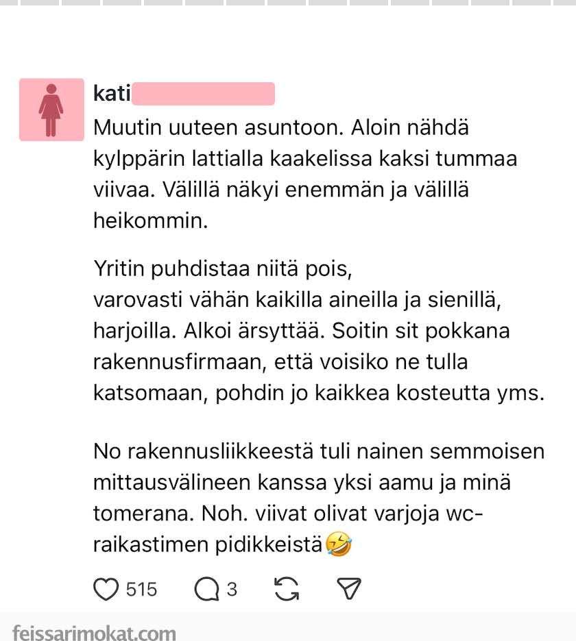 - Feissarimokat: Kati nolaa itsensä kylpyhuoneen seinän viivojen takia