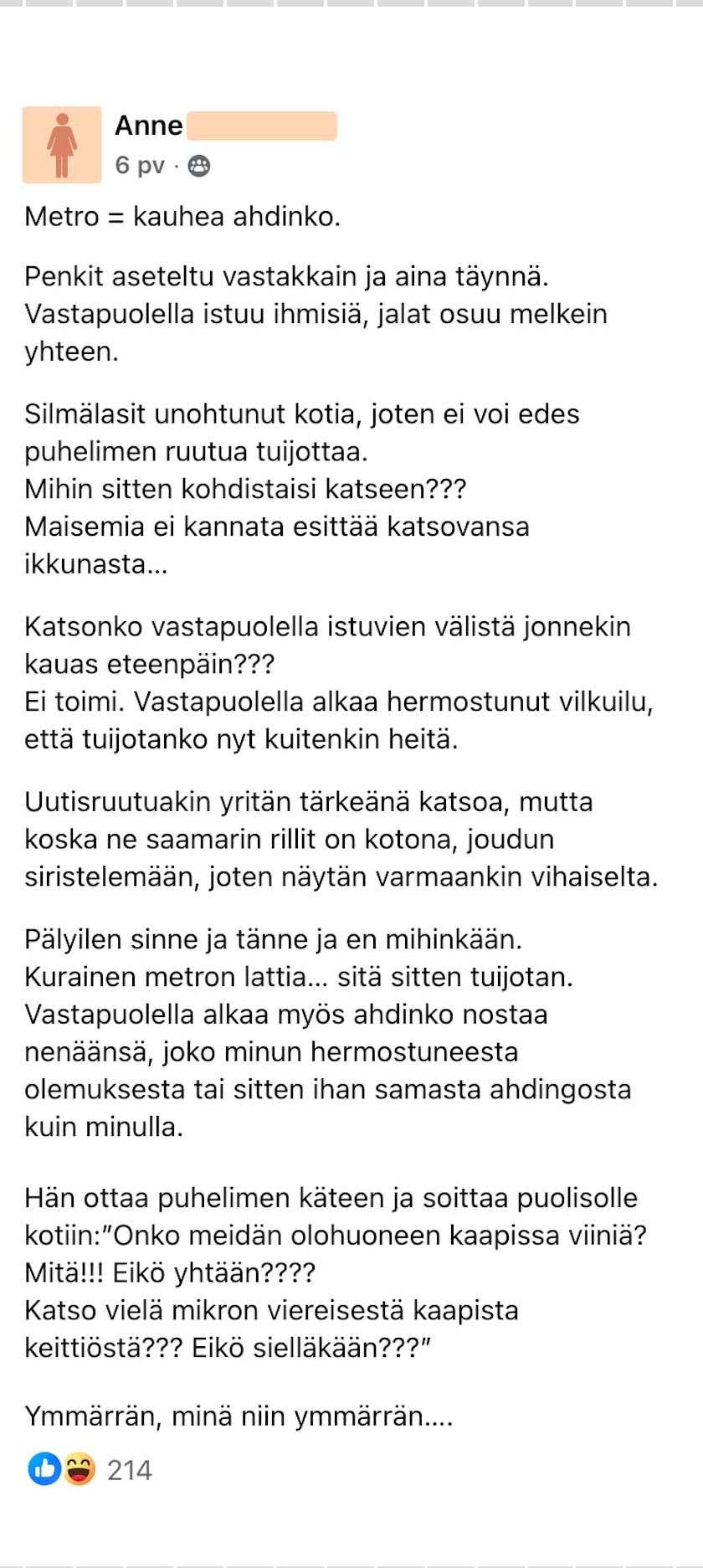 - Feissarimokat: Metrossa on ongelma katsekontaktissa
