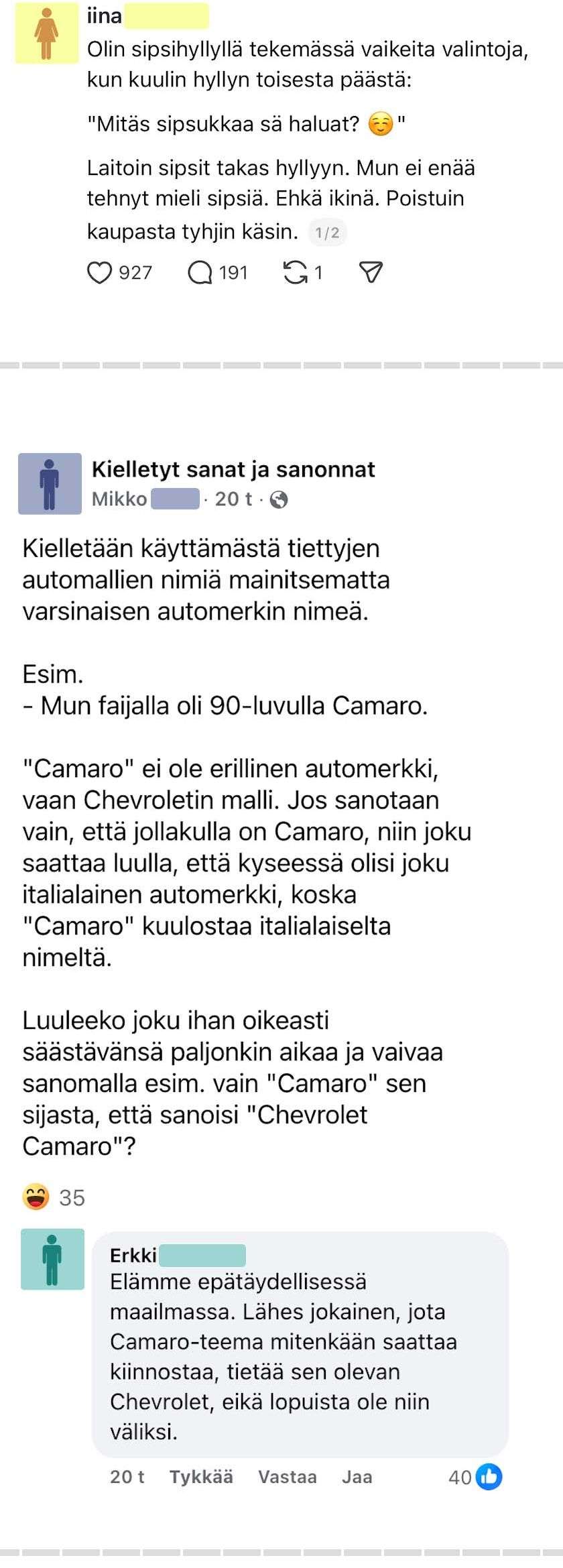 - Feissarimokat: Sanaleikki pilasi sipsihalut
