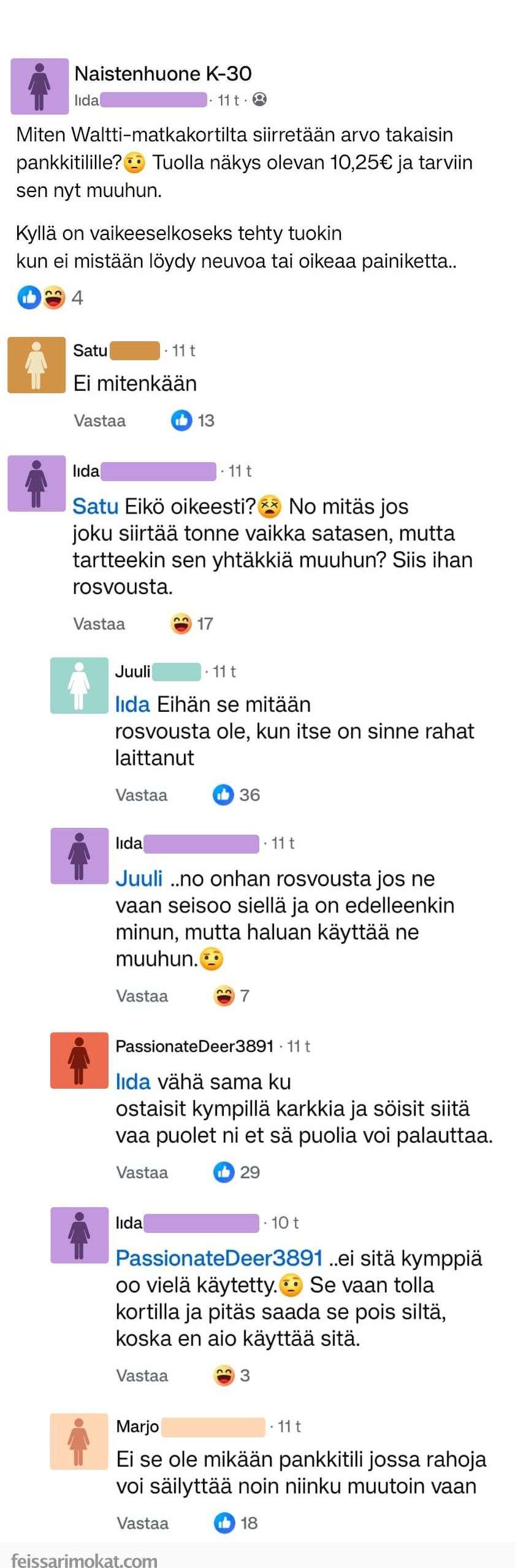 - Feissarimokat: Haluan kuluttamani rahat takaisin – ei onnistu?