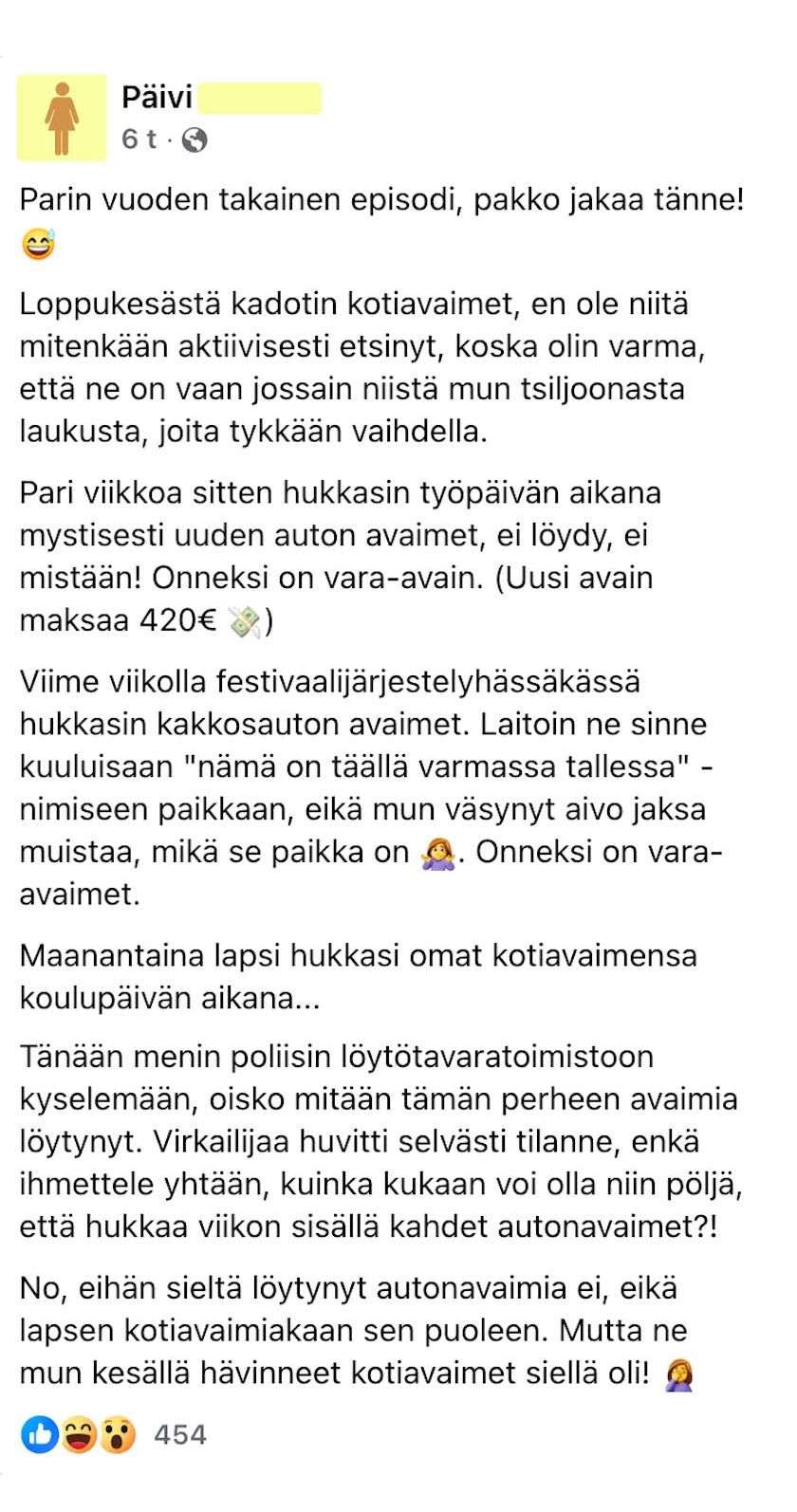 Lue alta, mitä avaimia Päivi on hukannut ja miten kummallisilla tavoilla.