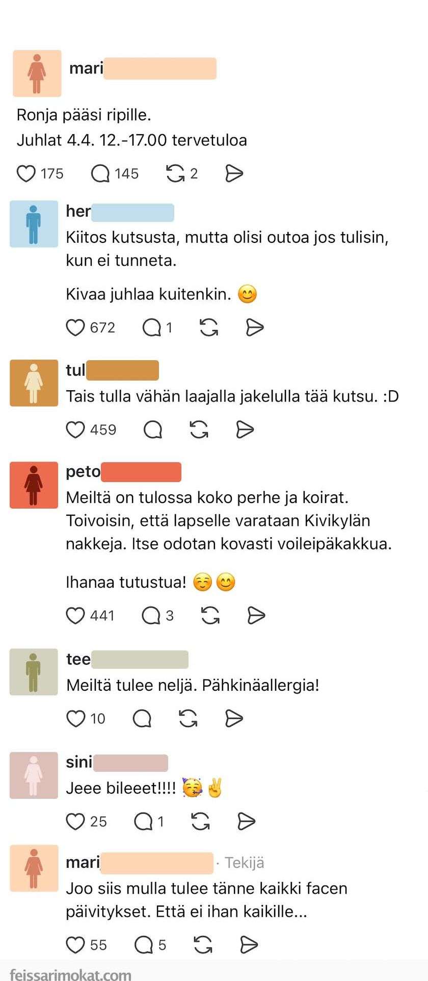 Mari on ollut hiukan innokas kutsun lähettämisessä. Hän tuntuu lähettäneen sen lähes kaikille.
